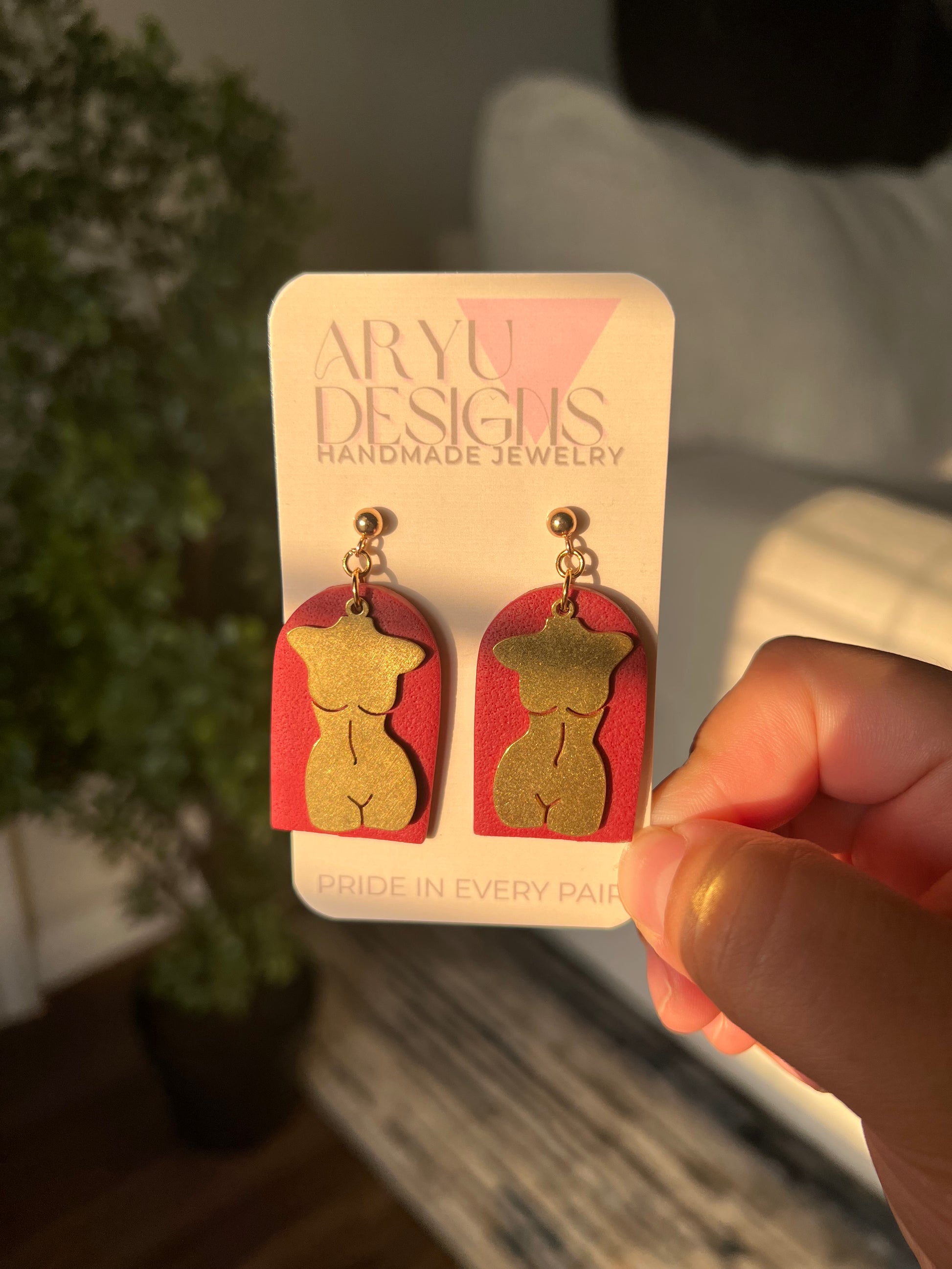 For the abstract minimalists, the Body Statement Dangles are easy to dress up in a casual fit or add some vavoom to a date night with a martini. This body-ody-ody outline is bold enough against her neutral color and gold ball hypoallergenic post.