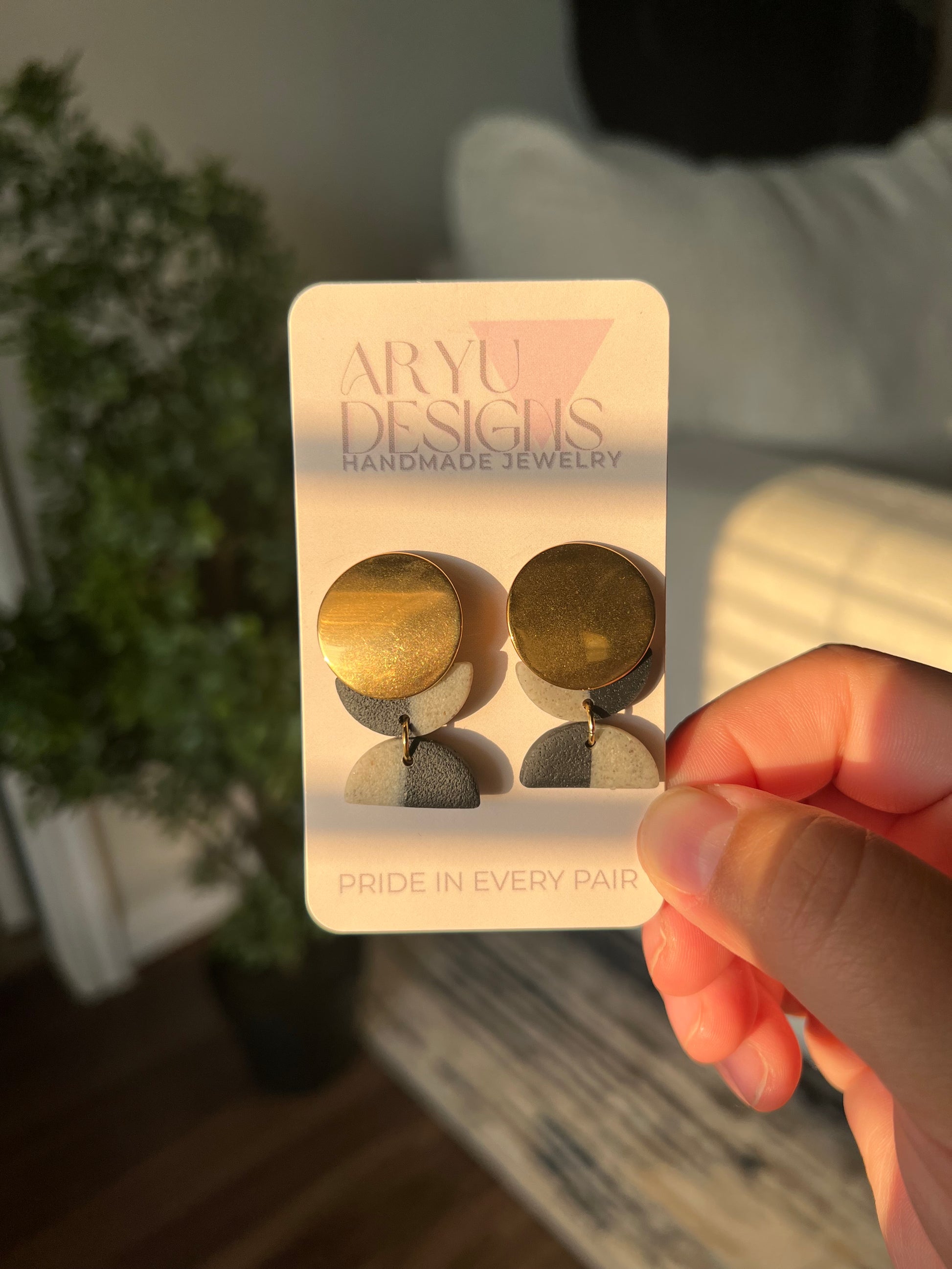 These Gold Color Block Dangles add a creative glam to your day with an 18k gold-plated round post for that just-dressed-up-enough vibe. This is our heaviest piece, yet still only weighs 3 grams on your ear. Who would've thought a statement this bold could still feel this light?